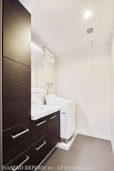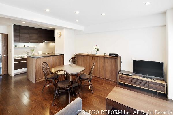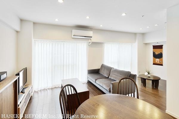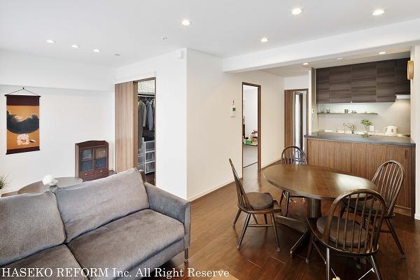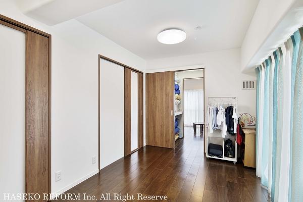 さらに永く住める家にするために、この機会に部屋割りを変更。リフォーム直後は、まだお子さんが小さいこともあって洋室①にて全員で就寝されていますが、お子さんが成長すれば洋室②に女の子、洋室①に男の子2人、カーテンで仕切ってリビングの一角で夫婦が就寝する予定です。また、専有部内の給排水管とすべての設備機器は取替えました。
