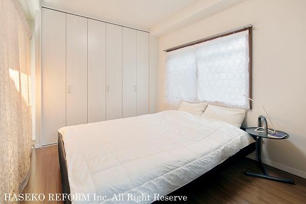 リフォーム前、ご夫婦は和室にベッドで就寝され、娘さんが使用されていた洋室は納戸になっていました。今回はまず、この洋室を主寝室にされたいというご希望がありました。ただ、この部屋は冬がとても寒かったため、南北の両窓に新しく内窓を設けて断熱対策を施し、壁面にはお手持ちの収納家具がぴったり設置できるクローゼットをつくりました。そしてこの部屋にあったものは、旧和室部分にパントリーをつくって、そこに納めました。このパントリーも収納するものに合わせて棚を造り付けています。