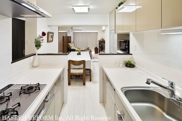 以前は部屋が細かく仕切られていたため風通しも悪く、北側の洋室には結露やカビが発生していました。また、家を大きく分断していたキッチンは、来訪されたお客様に丸見えで、お茶を入れる際に後ろ姿を向けてしまうこともK様は気になっておられました。
