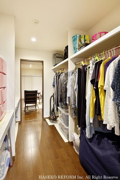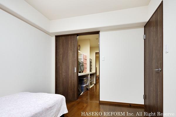 もともと東側一面にLDが配置されていたので、大きく間取り変更はせず夫婦それぞれの寝室を少しずつ拡張し、使う予定のない和室を大きなウォークインクローゼットに変更しました。クローゼットはリビングからも奥様の寝室からもアクセスできるので風通しもよく使い勝手のよい空間になっています。