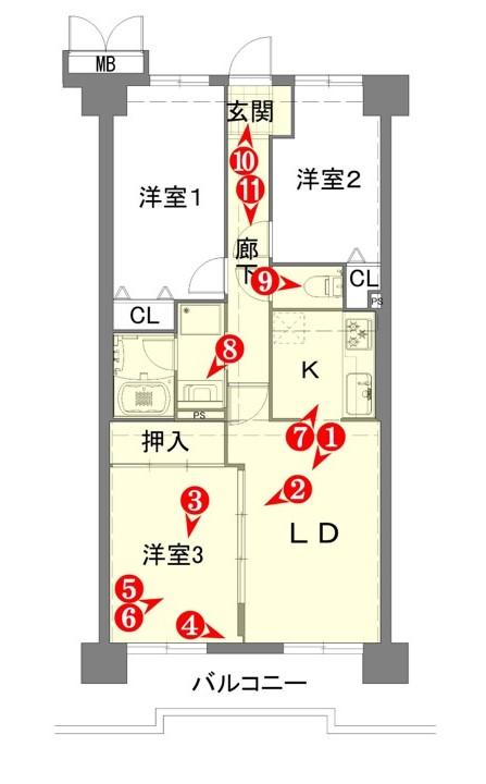 - キッチン、リビングダイニング、洗面/浴室/トイレ、収納、玄関/廊下