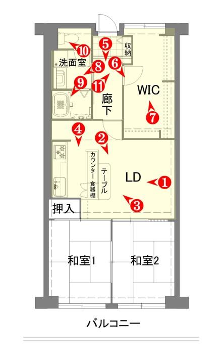 - リビングダイニング、洗面/浴室/トイレ、収納、玄関/廊下