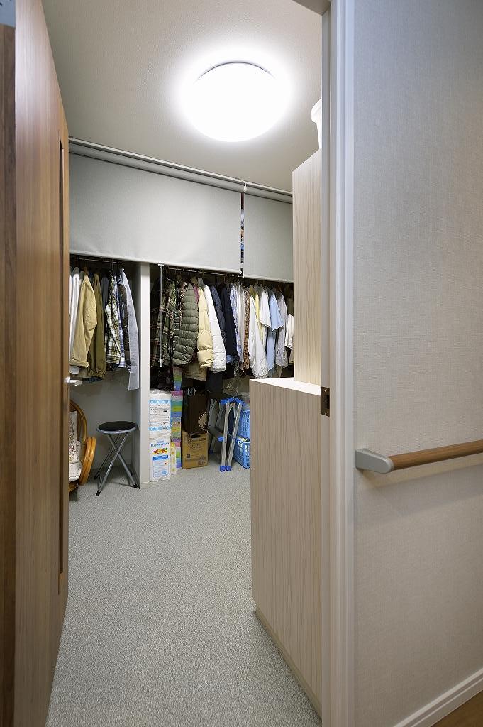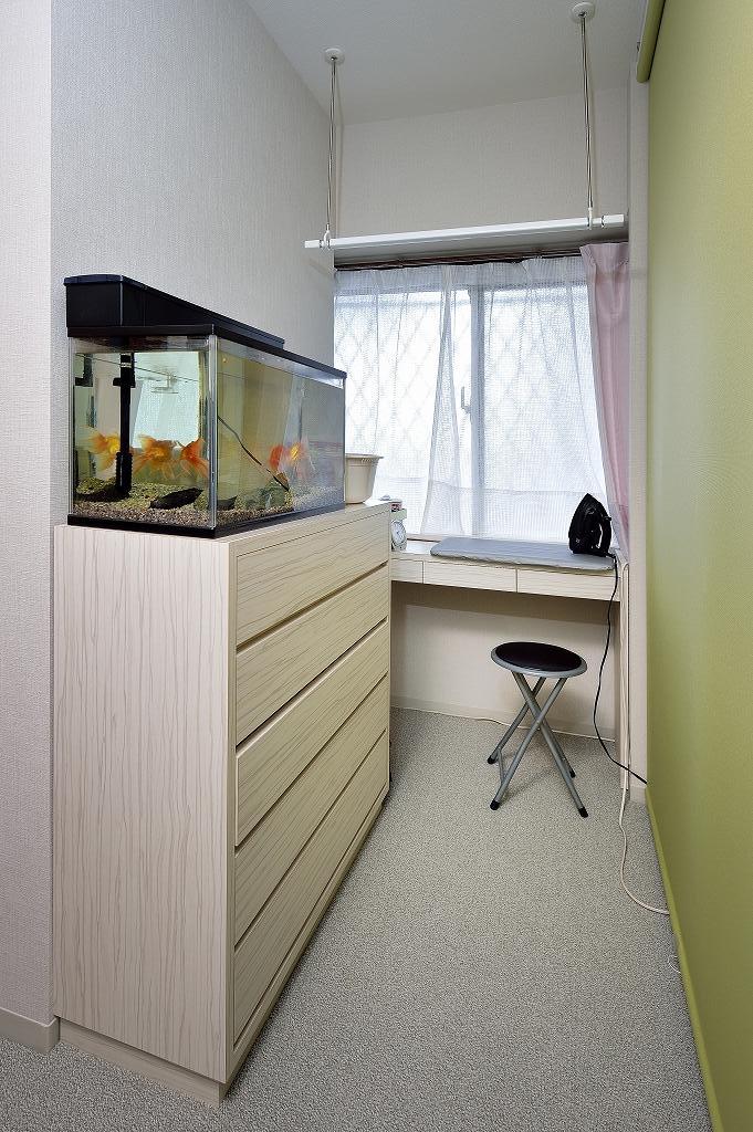 また納戸となっていた洋室は思い切ってウォークインクローゼットに変更。アイロンや室内干しができるユーティリティスペースも兼ね、奥様の趣味であるビーズの作業場やペットの金魚の居場所、趣味で野菜作りをするご主人が収穫した野菜の置き場所としても活躍しています。