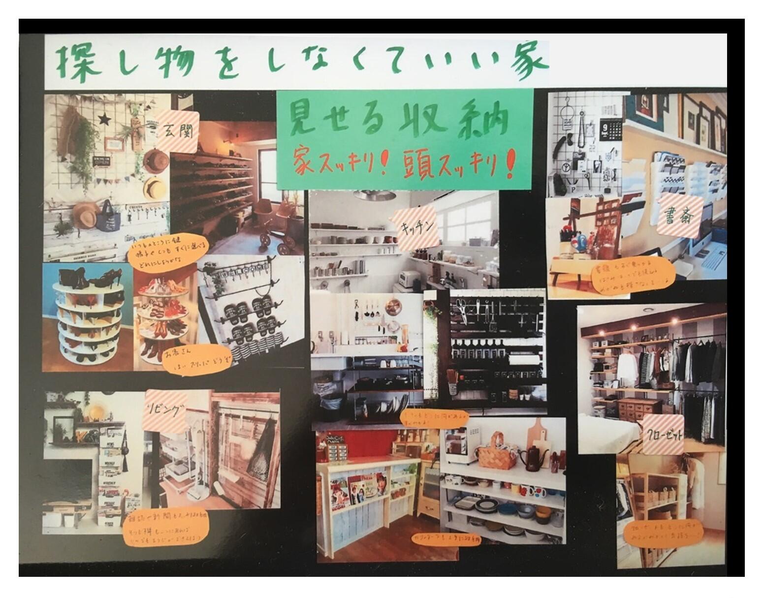 持ち物を一目瞭然に把握できる「オープン収納」を第一のご希望としてご依頼くださったKさま。15年以上前にご提案した食器棚をずっとご愛用いただいていた、ご縁がきっかけでした。イメージを素敵なコラージュにしてお持ち下さり、それを原点として、キッチンや洗面化粧台、玄関収納に至るまで「見せる収納」を徹底したプランをご提案させていただきました。