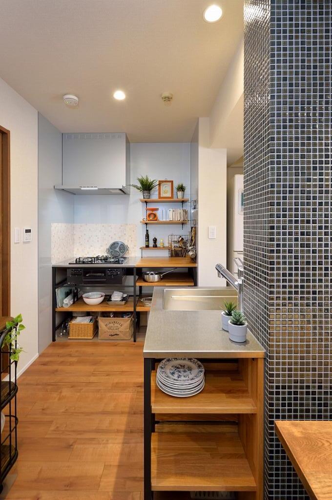 オープン収納で思考すっきり。素材ミックスのカフェ風リノベ。