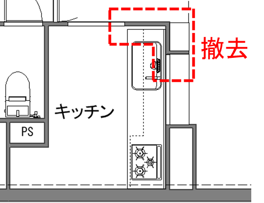 設備機器の老朽化に伴い、更新を検討されていたA様。対面キッチンをお使いでしたが、正面の開口では、リビングをほとんど見渡せず、閉鎖的に感じておられました。オープンキッチンに憧れつつも、構造的にできないと思っておられましたが、弊社より問題のないことをご案内し、思い切ってシンク横の壁や吊戸を撤去。バルコニーからの日差しも行きわたる明るいキッチンに生まれ変わりました。さらに、ダイニングテーブルの上が散らからないようにダイニング側からも使用する引出を設置しています。