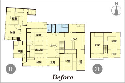 今までT様のご両親が母屋にお住まいになり、ご自身は離れに住んでおられました。今回、ご両親と住まいを交換することになり、母屋をご自身のライフスタイルに合うようにリフォームすることになりました。
