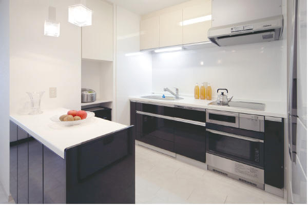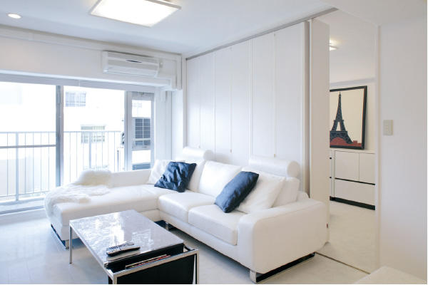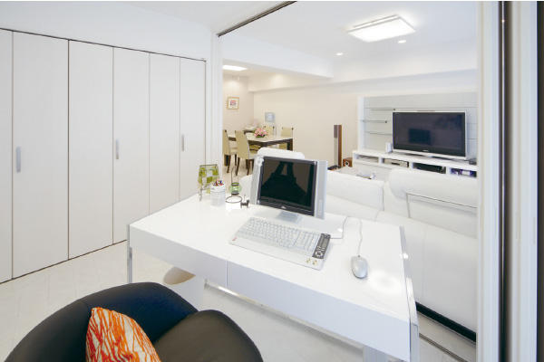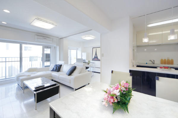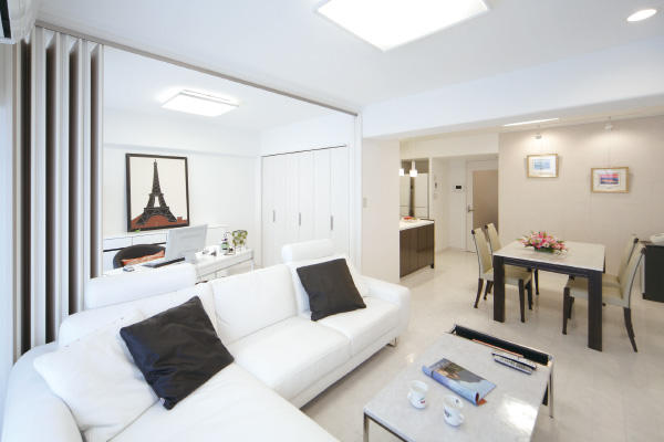 ご夫婦二人での暮らしを"充実したリビングを中心とする空間で実現したい"との意向でリフォームされました。白と黒でコーディネートされたリビングダイニングとそれに続く書斎は贅沢な広さを感じさせ、 細部にも随所にこだわりの演出がほどこされています。