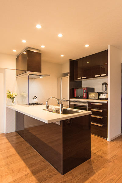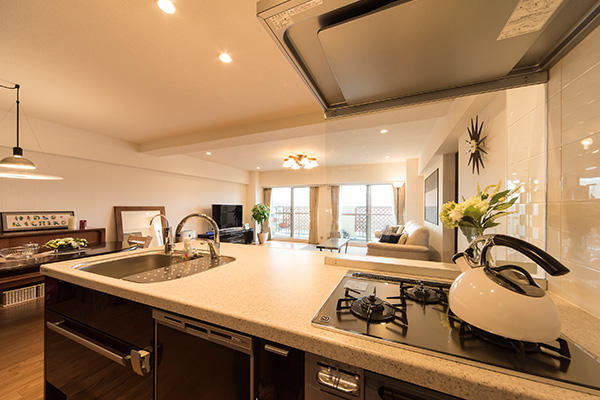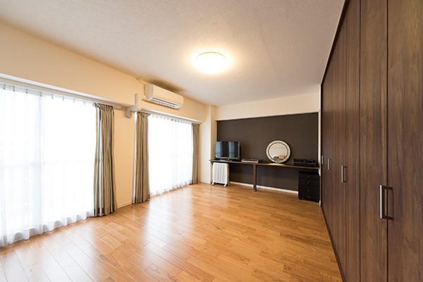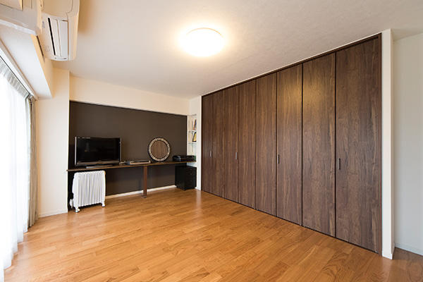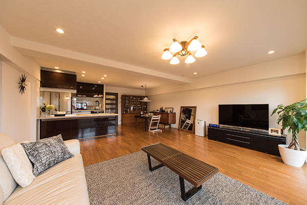 キッチンとユニットバスの交換のご希望があり、ショールームのリフォームフェアにご来場されたのがきっかけでした。 ご要望を伺いながら、最新機種でどんなことができるのかを考え、既存のプランを反転させた対面キッチン、合わせて和室を撤去したLDKの拡張をご提案。 その結果、キッチンでも自然光を感じる明るく広々としたLDKが完成しました。 LDKの隣室の寝室も同時期にリフォーム。間仕切りを撤去したことで、広々とした中にやわらかな自然光が入り、収納は一面にまとめてたっぷり取っています。 どこに居ても自然の光を感じながらゆったりとした時間を過ごすことができるお住まいになりました。