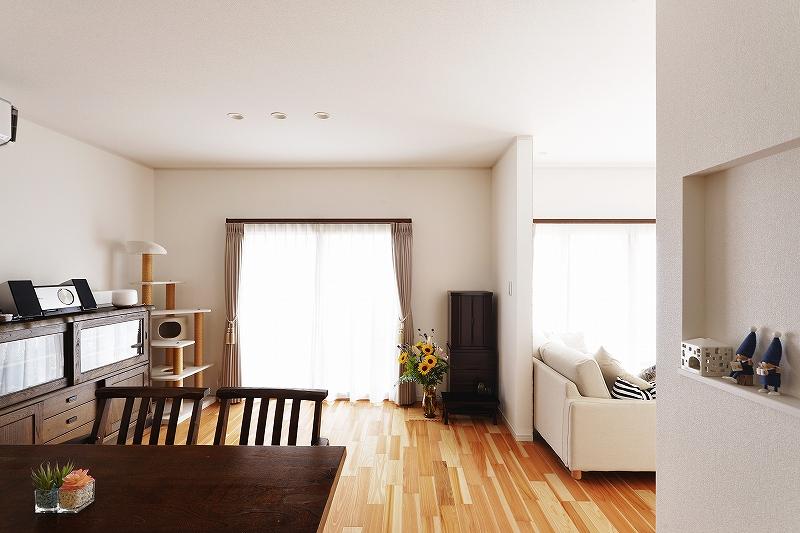 ワンちゃん、猫ちゃんとの暮らしを楽しんでいらっしゃるH様。ご夫婦とご家族の一員であるペットが毎日を楽しく暮らせるようなリフォームを心がけました。キャットタワーやペットドアなど、これからワンちゃんや猫ちゃんが楽しんで使っていただければと思います。