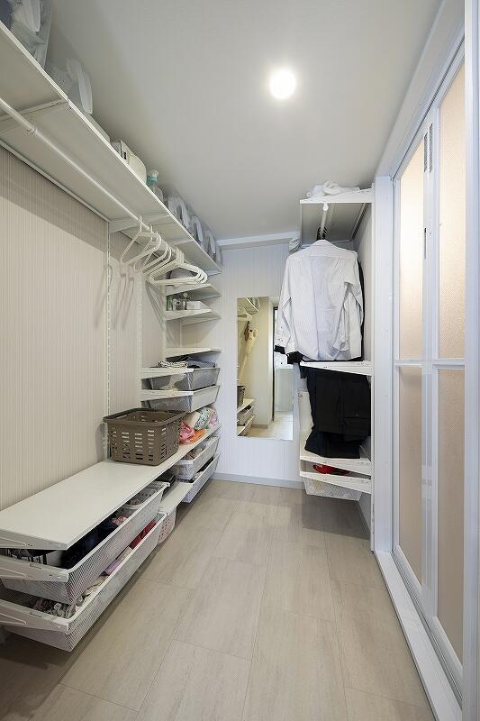 小さい子供が二人いるので、家事をしやすい間取りにしましたが、とても使い勝手がいいです。行動パターンに沿った場所に収納を配置しているので、散らかりにくいですね。