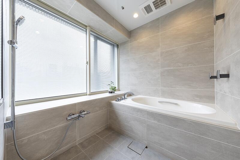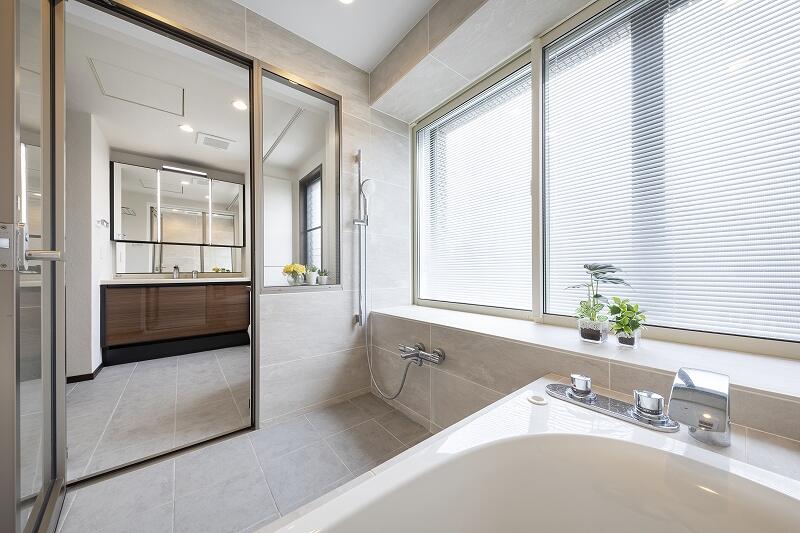 ゆとりある間取りのお住まいはお風呂も広々。大きな窓もあって、空を眺めながらゆっくりバスタイムを楽しめそう・・・