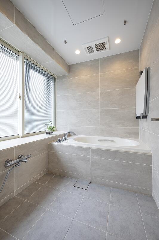 今回の浴室リフォームでは換気暖房乾燥機、保温材で包まれた浴槽、ヒヤッとしづらい床、二重サッシ等で寒さ対策を行っています。既存の窓の内側に設置するサッシ(=二重サッシ)は、外気の冷たさや室内の熱が出入りするのを軽減し気密性を高めてくれるため、特に窓が大きい場合は効果を発揮します。浴室だけでなく北向きのお部屋の寒さ対策としてもおすすめです。