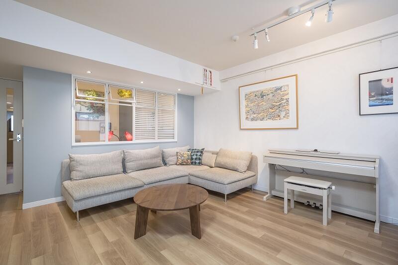 まず和室を解体し、ウォークスルークローゼットと寝室収納の造作・内装工事を実施。お荷物と共に生活の場を移していただき、続いてワークスペースとリビングダイニングの工事に着手。廊下の内装も含め、約5週間で完成させました。