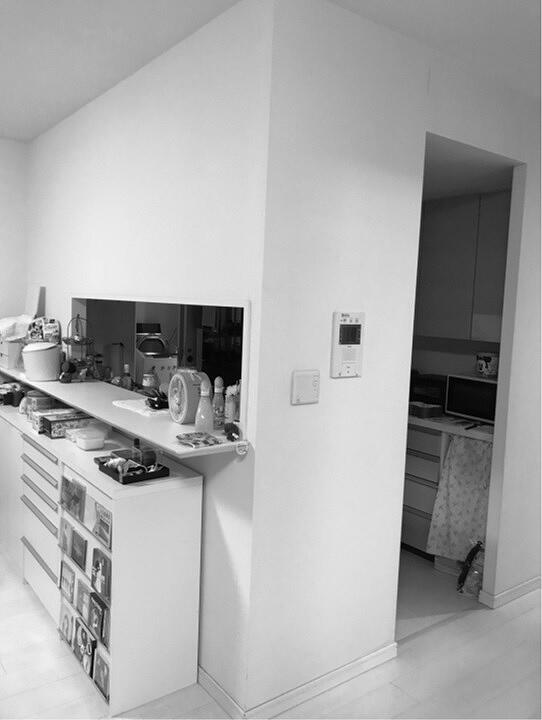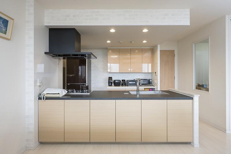 床面は床暖房対応で、貼り替えると大掛かりな工事になることもあり、袖壁を腰高まで残しキッチンに合わせて奥行を広げ、貼り替えなしでそのまま使えるようにしました。袖壁にあったインターホンやスイッチなどの電気設備は、使い勝手を考えて最適な場所に移設しました。