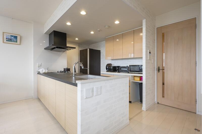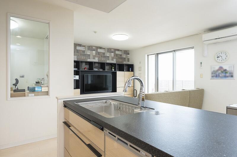 明るいオープンキッチンと壁面収納で毎日を暮らしやすく。