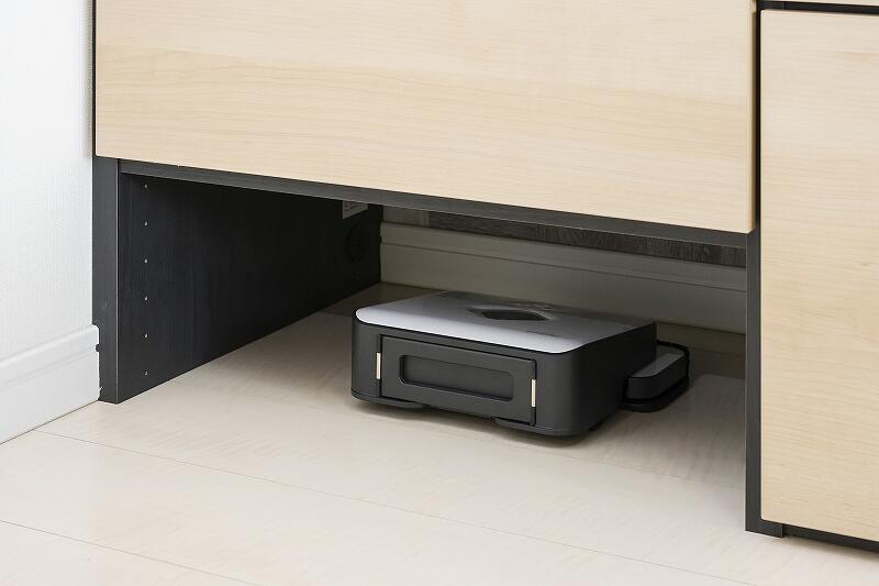 お掃除ロボットの定位置は扉をカットした壁面収納の一角。