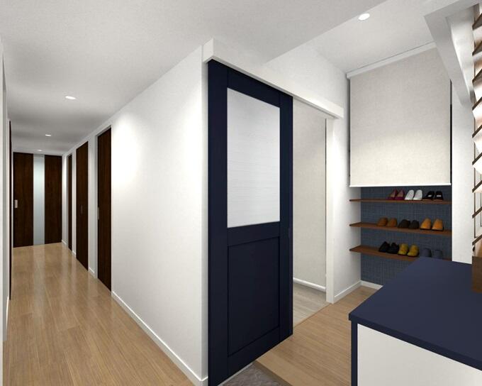 この時点で、『玄関を広げたい』『キッチンの壁を取り払ってリビングと一体感のある空間にしたい』などご夫婦のやりたいことはある程度固まっており、具体的なご希望を図面やイメージパースで確認していただきながら進めていきました。