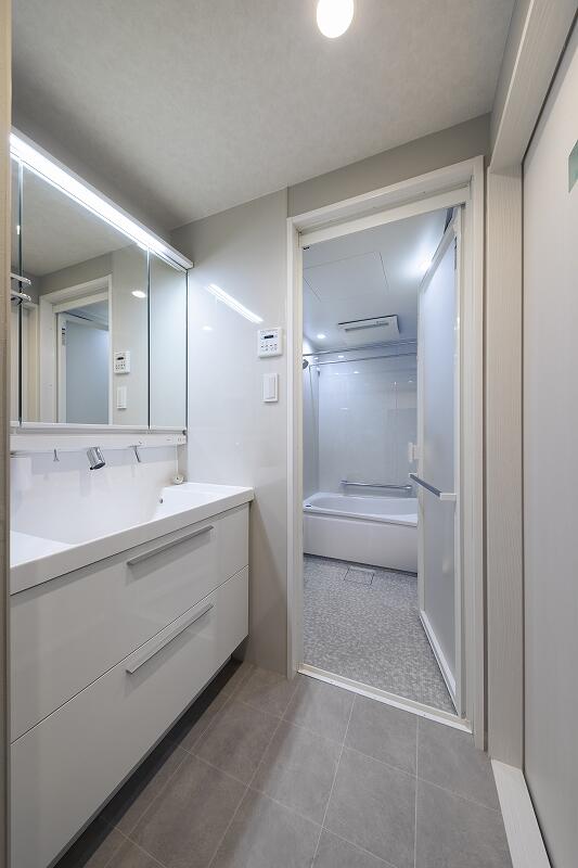 - リビングダイニング、キッチン、浴室、洗面室、トイレ、洋室、収納、廊下