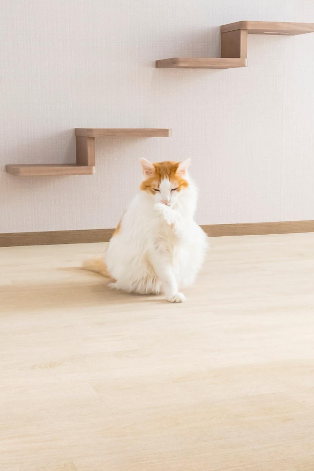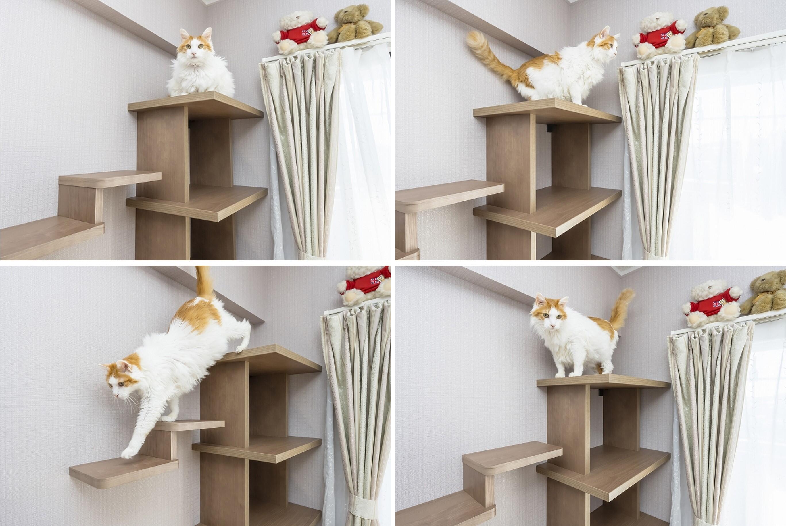 T様とのご縁を通して、キャットステップが猫ちゃんの習性を生かした遊び場という他に、高齢猫ちゃんにとっての日々の運動習慣の場であり、心と体を整える場所になるということを教えていただきました。また、そうなるまでに奥様が、大好きなごはんやおやつで誘導しながら優しいトレーナーさんとなって見守って来られた事に、とても深い愛情と心の繋がりを感じました。