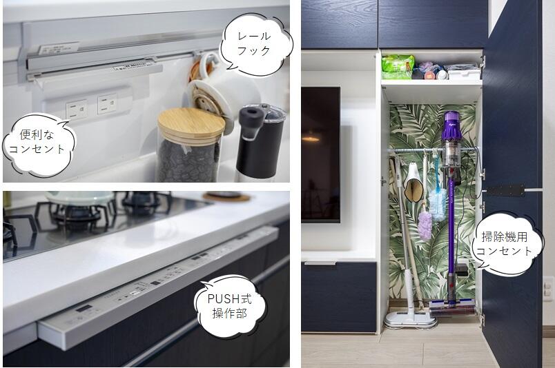 ●キッチンの立ち上がりのコンセントやレールフックは大変便利にお使いだそうです。