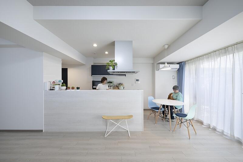 壁を取り払い、会話を楽しめるオープンキッチンに