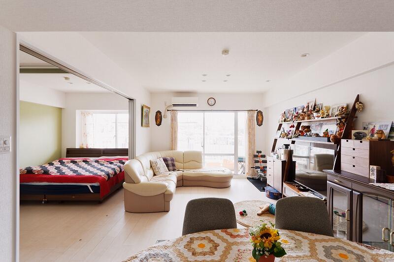 故障したスイッチのご相談から始まった今回のリフォーム。お住まいのマンションで開催していたリフォーム相談会でお会いしたS様は新築時から長くお住まいで、既に2度、リフォームを経験されているとのことでした。水まわりの配管、フローリングや壁紙といった内装など、傷みが気になっているところもきれいにしたい、LDを和室とつなげて広くしたい、といったお考えもおありでしたので範囲を広げてご提案。ご予算に合わせて取捨選択いただきました。