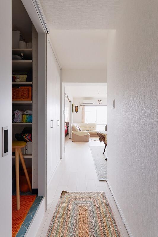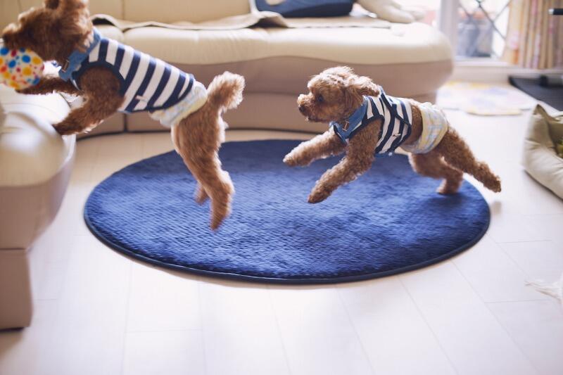今回のリフォームで、玄関からリビングダイニング、洋室3までがひと続きとなり、3匹のワンちゃんたちは今まで以上に行き来しやすくなりました。床は滑りにくく汚れにくい加工のされたペット対応のフローリングに変更。元気いっぱいに勢いよく走り回る2匹と、立ち上がりに苦労する高齢犬のため、マットやラグを併用されています。愛犬たちの様子に目を細めながら「歩きやすいみたいですよ」とお話ししてくださいました。