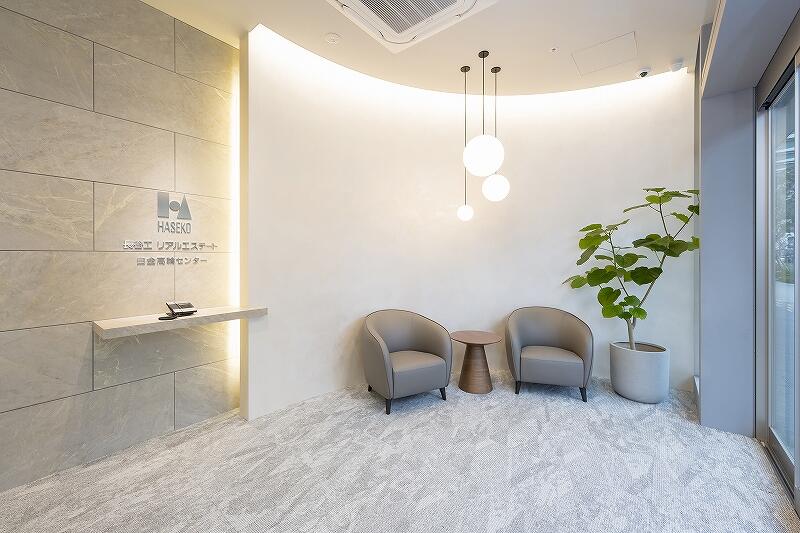 ハイクラスのマンション仲介を行う店舗様のため、ラグジュアリーな仕様でゆったりとしたエントランス、お打合せスペースをご提案させていただきました。