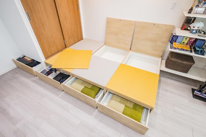 和室をなくしてリビングを広げたいと考えておられたときに当社施工事例『オーダーメイドの畳スペースとこだわりの壁面収納をプラス』をご覧になり、「これだ!」と思われたF様。担当者からの提案は、小上がりの向き、収納の位置が見ていた事例と異なりましたが、使い勝手が考慮されておりリビングが広く使えそうだと気に入ってくださいました。