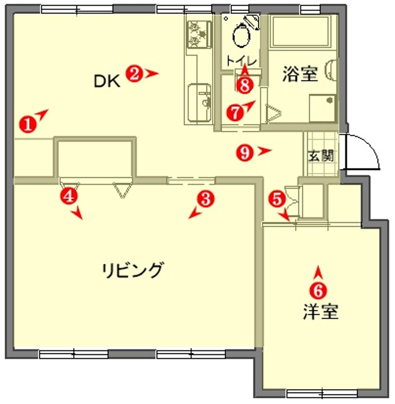 - キッチン、リビングダイニング、和室、洗面室、浴室、トイレ、寝室、収納、玄関・廊下