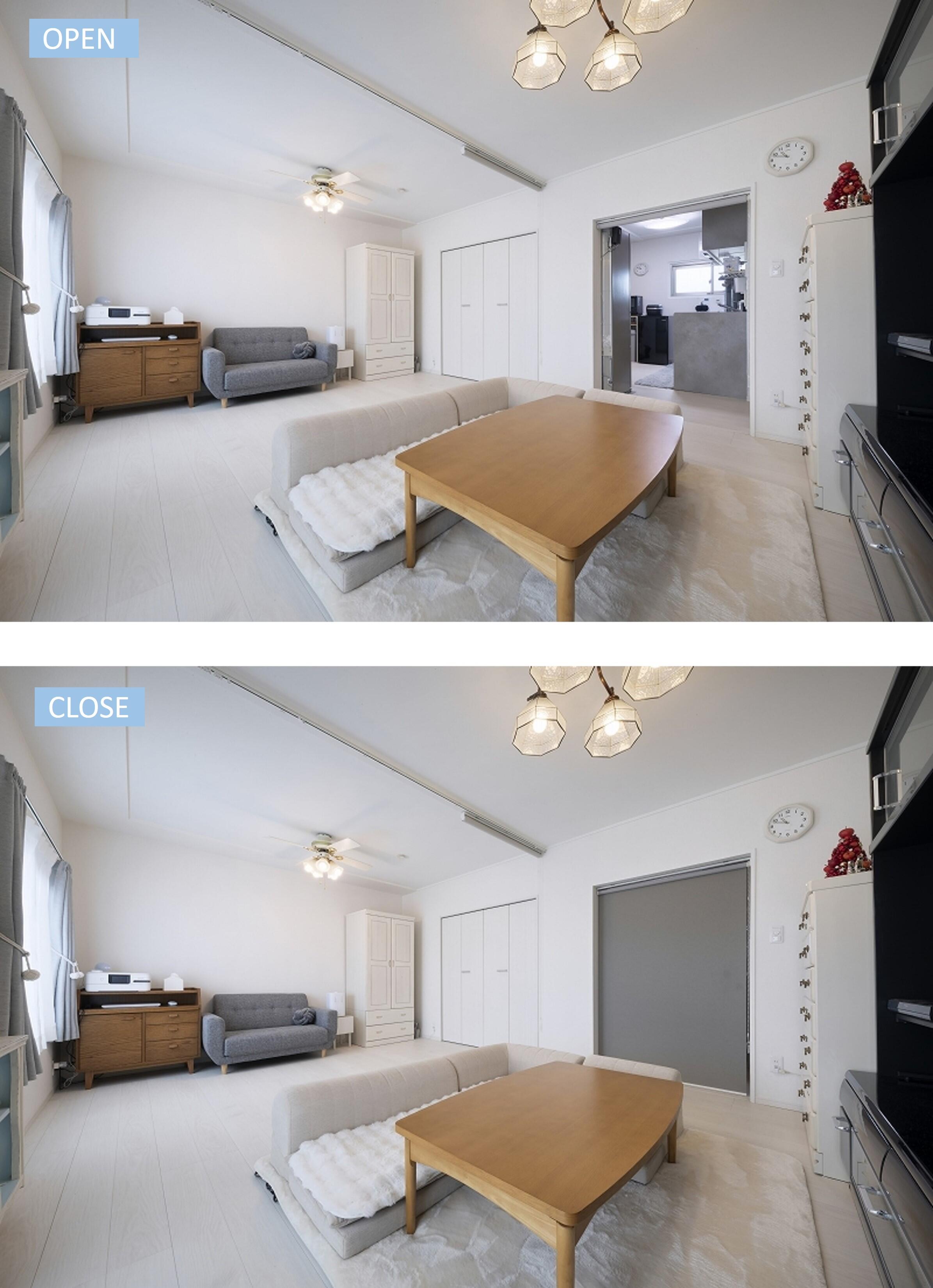 段差も扉も極力なくしたことでお孫さんが走り回っても安心、お掃除もしやすくなったとのこと。わが家で過ごすご夫婦お二人の時間も、お嬢さんやお孫さんたちとの時間も、これまで以上に楽しんでいただけることを願っています。
