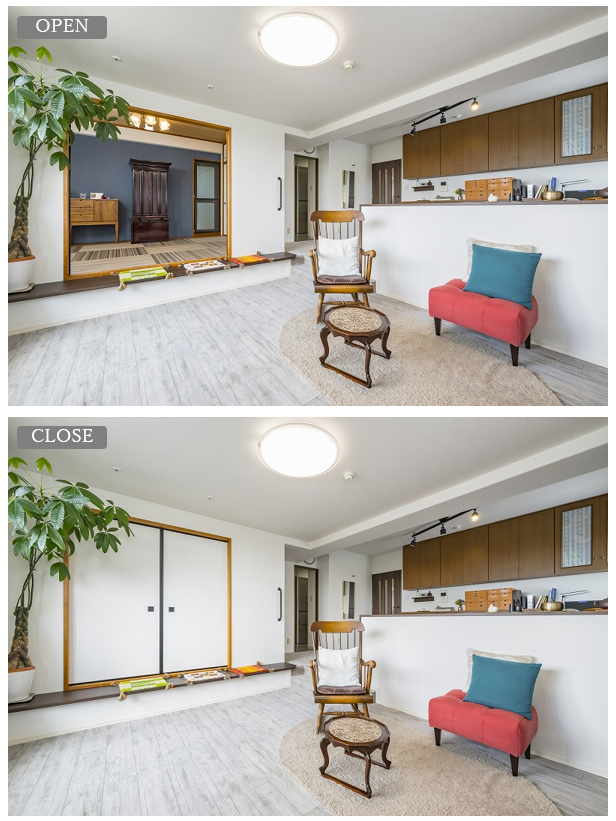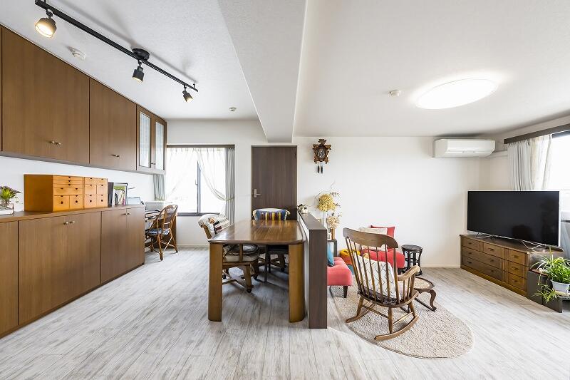 これまで子育て中心だった暮らしから一転、「これからは自分らしいインテリアを楽しみたい」というS様の想いが詰まった今回のリフォーム。床材に調和した巾木の色、ウォールナット調の家具に合わせた建具の色、そしてブラウンの畳が空間に統一感をもたらし、すっきりと洗練された住まいへと生まれ変わりました。完成したお住まいを見たS様も、「思っていた以上の仕上がり!」と、大変ご満足いただけました。