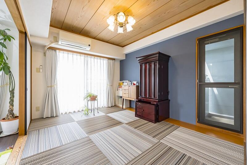 |2| ブラウンの畳が演出する、モダンで落ち着いた和空間