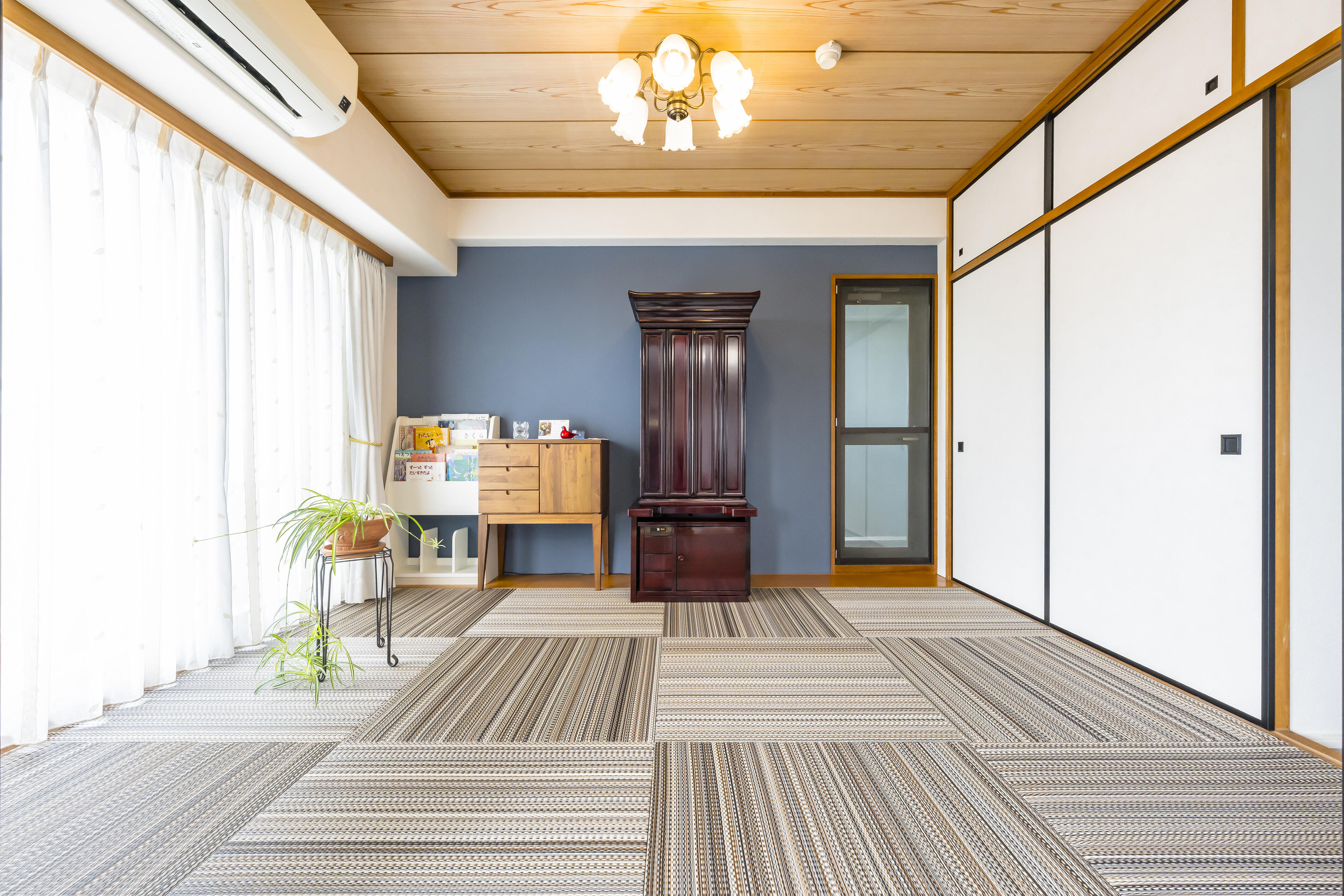 従来の緑系畳とは一線を画す、シックなブラウンの畳は、和室にモダンな印象を与えつつ、落ち着きと温かみを演出します。家具やインテリアとの調和も取りやすく、洋風の要素とも自然に馴染むため、現代の住空間にぴったりです。