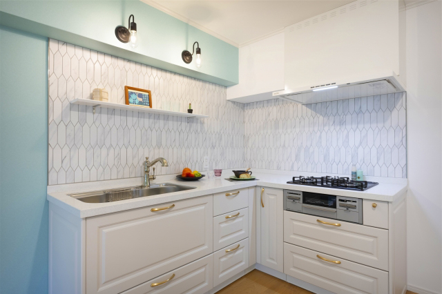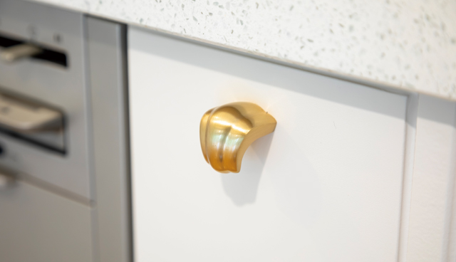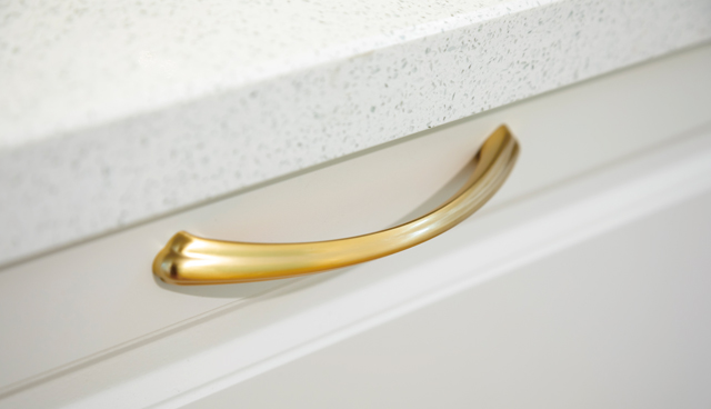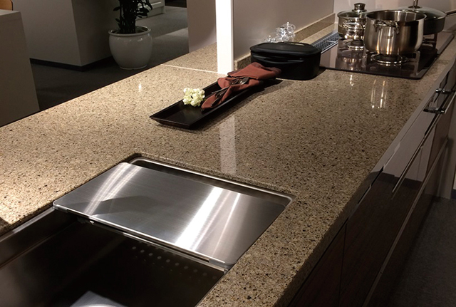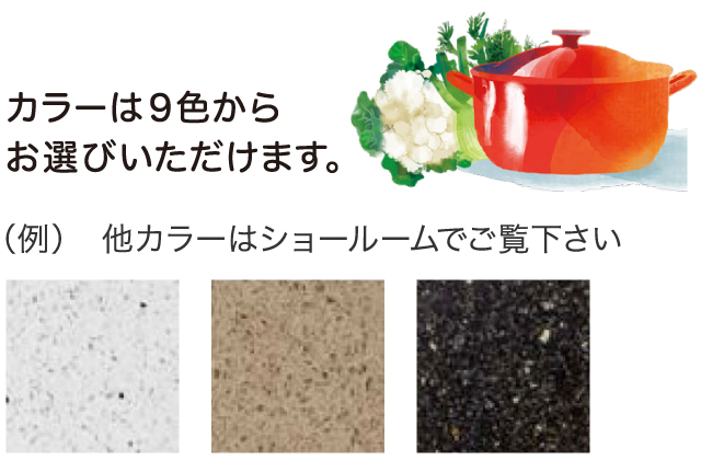 93%以上の水晶を主成分とする天然石と樹脂で成形されたクォーツストーンの天板は重厚感とキラキラした光沢の美しさだけでなく、耐久性も高いのが特徴。オーダーしてよかったと思える私のこだわりポイントです。