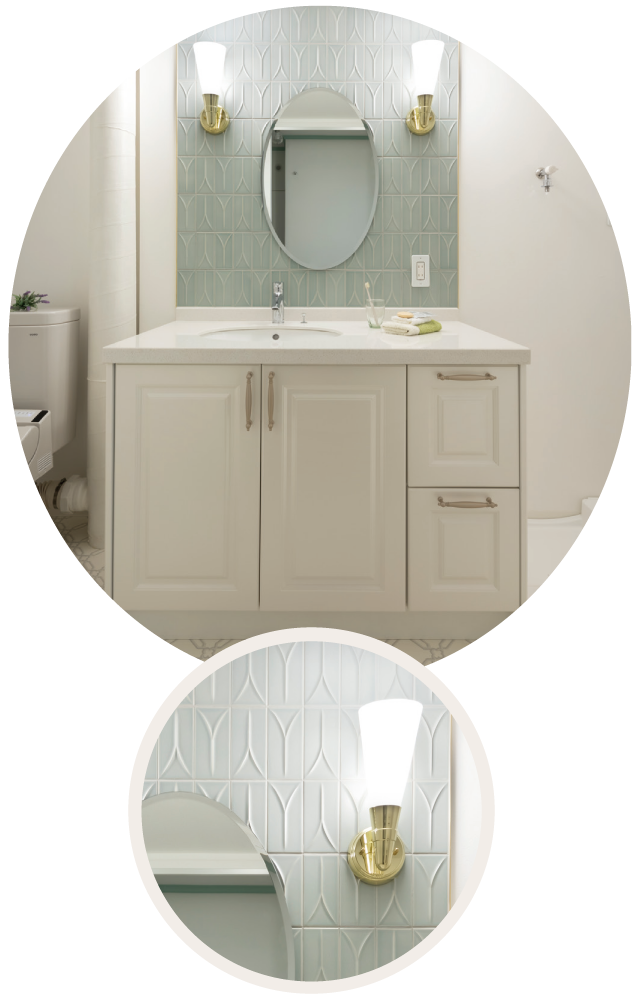 洗面化粧台もキッチンと同じ扉材を使用し、
