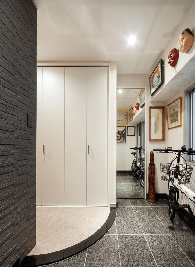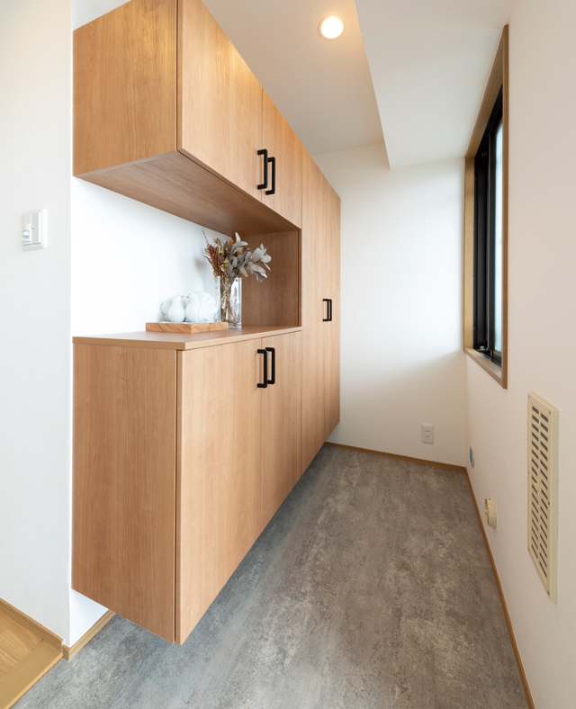 窓を玄関に取り込んだことで明るく広々とした空間になりました。