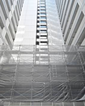 この先何十年にも渡って、安心で快適にお送りいただけるマンションライフを居住者様にご提供するために、既存のマンションに足場を組立て、屋上・バルコニー・共用廊下の工事(塗装工事・防水工事など)を行います。