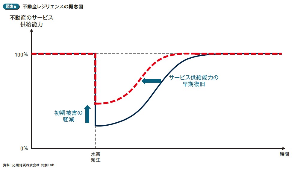 水害などの災害時に不動産がもたらすサービスを極力絶やさないことは、不動産の「レジリエンス」を高めることと同義である。