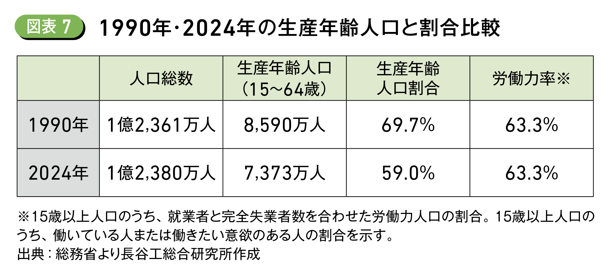 2. 縮む生産年齢人口と維持される労働人口
