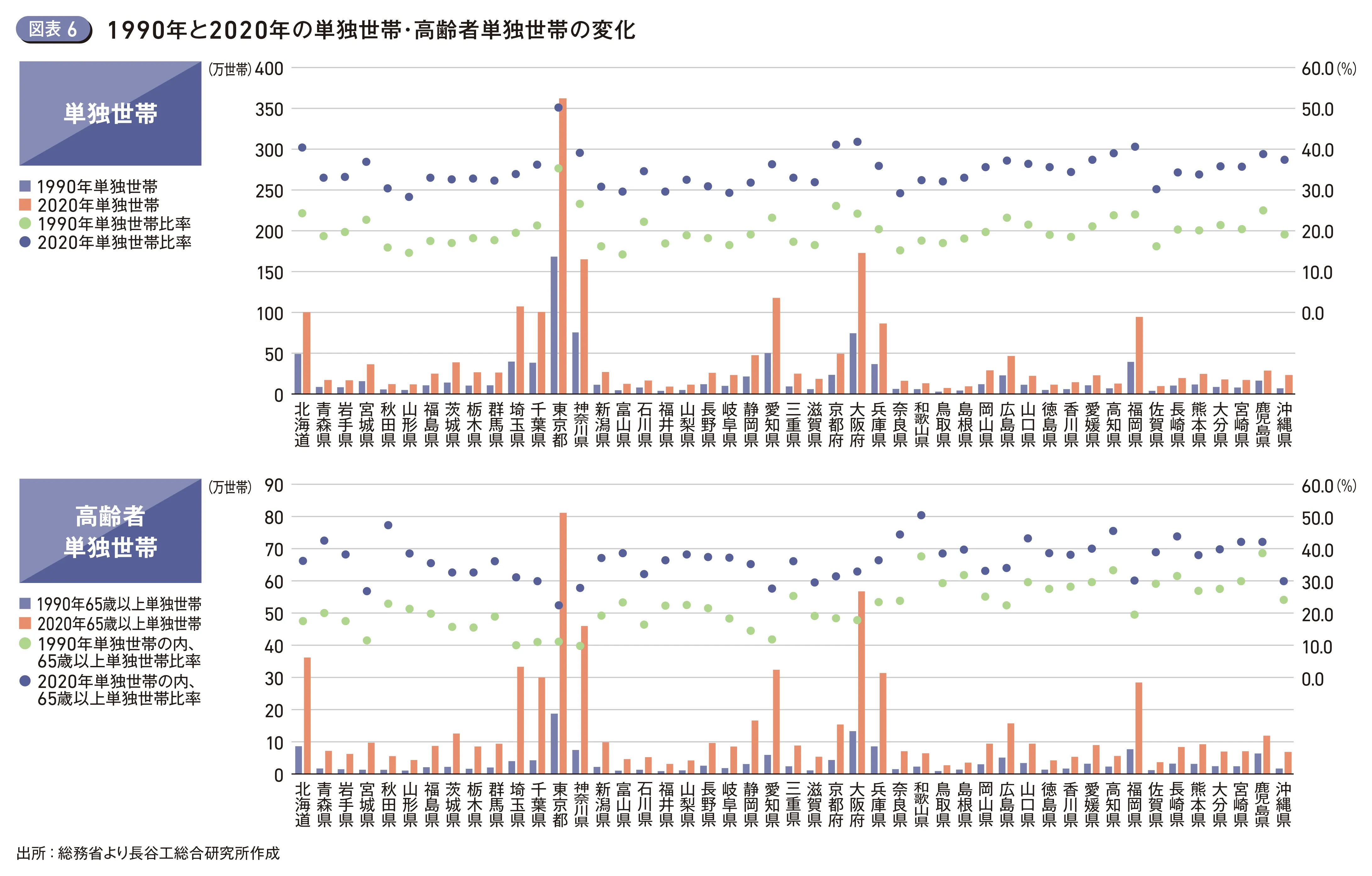 1. 都市部を中心に拡大する単独世帯、20年間で2.3倍に