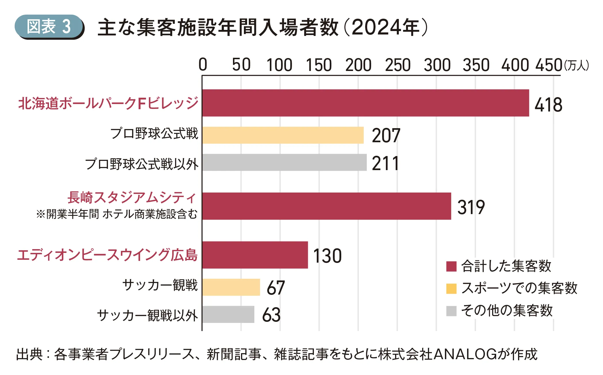 2024年は年間418万人の入場者があり、プロ野球公式戦が207万人、プロ野球公式戦以外で211万人の来場者を集めている(図表3)。