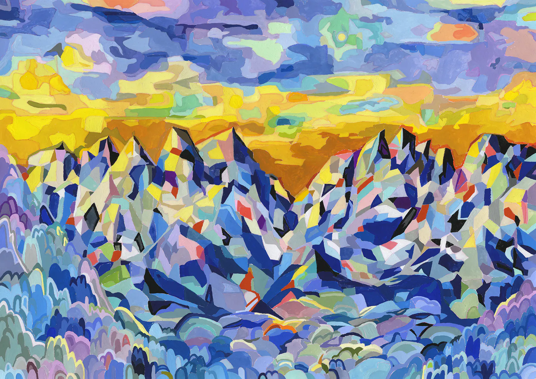 下の方の青色は、緑やピンクを入れ、深みのある色にすることで、光がより強調されるようにしています。『CRI』2025年2月号表紙 -