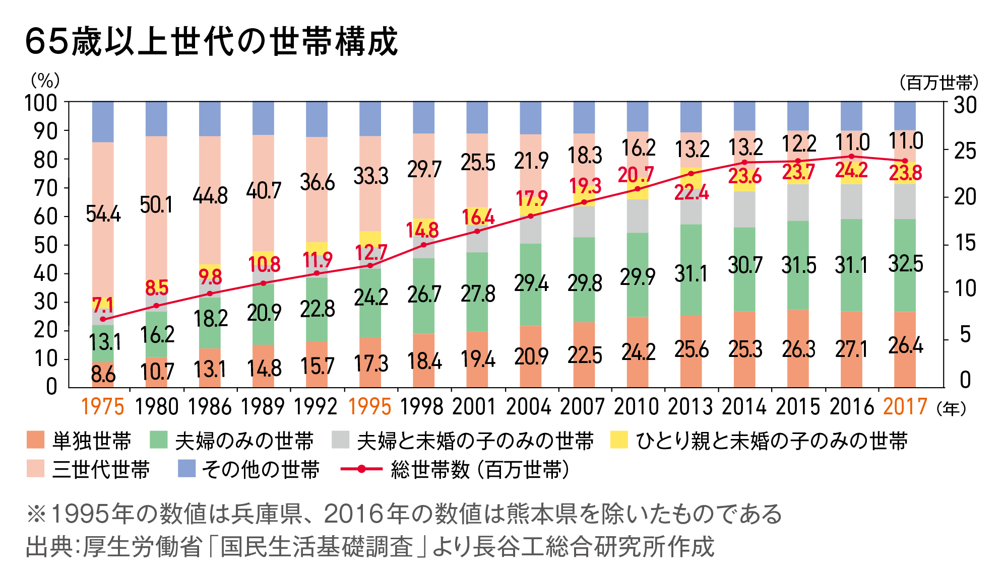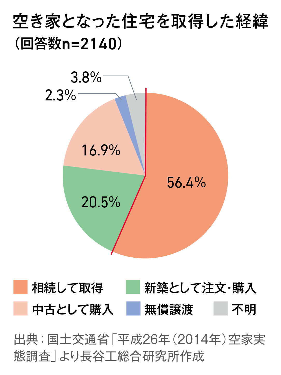 高齢者の相続人が自宅等の不動産を相続しても、既に相続人が自身で住宅を取得していたり、老人ホーム等の高齢者住宅に転居している場合には、相続不動産が空き家となる可能性が高い。国土交通省による平成26年(2014年)の空家実態調査によると、空き家となった住宅を取得した経緯として「相続して取得」という回答が半数を超えている。高齢の相続人は認知症や健康上の都合から、相続手続きが困難となる場合もあり空き家が増加する一因にもなっている。空き家の存在は、景観や治安の悪化だけでなく、老朽化による倒壊被害の可能性もある。団塊世代・団塊ジュニア世代が多く住む都市部においても、今後分譲マンションの空き家が増加することにより、管理体制・資産性保全への影響が懸念される。
