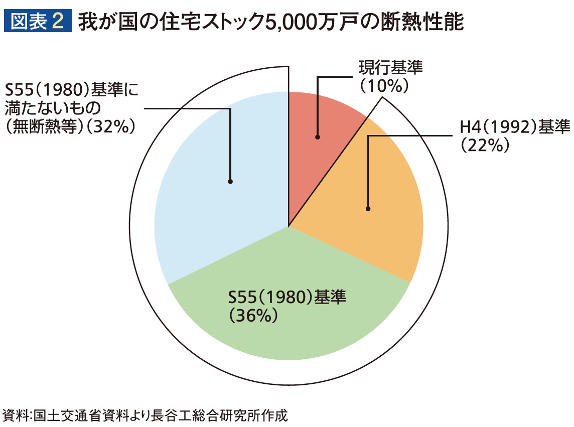 これをそのまま当てはめると数百万戸の断熱性能不足マンションが存在することになる(図表2)。