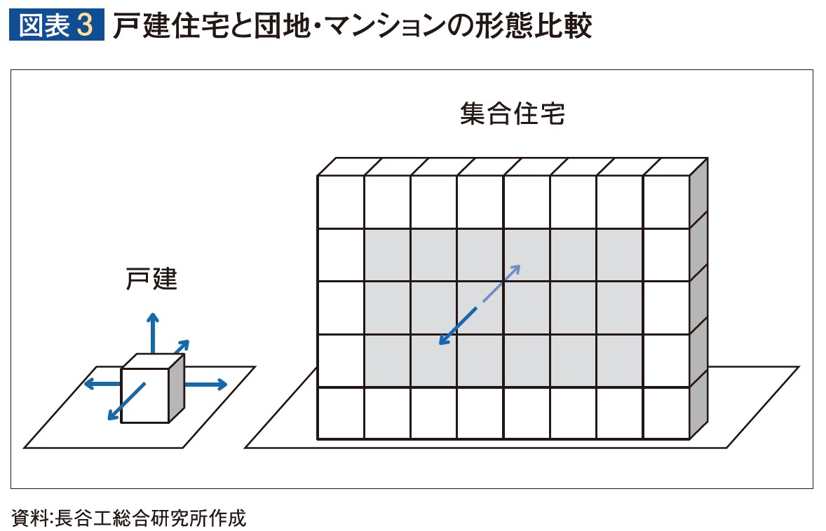 建物全体で実施すれば一度に数十戸単位での改善が行われる。これは戸建にはない効率の良さである(図表3)。逆に、マンションの