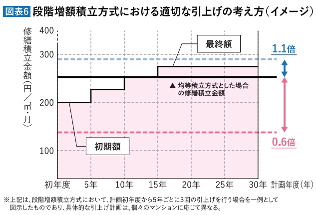 段階増額積立方式で、計画期間の後半に大幅な引き上げを予定している場合、実際に修繕積立金の引上げを行うことができず、