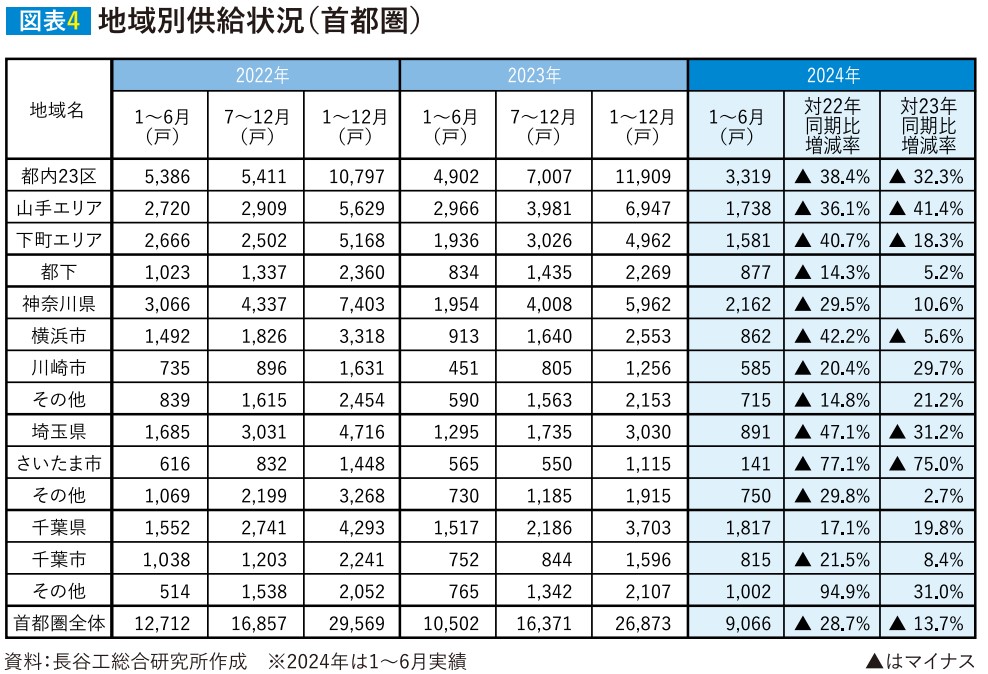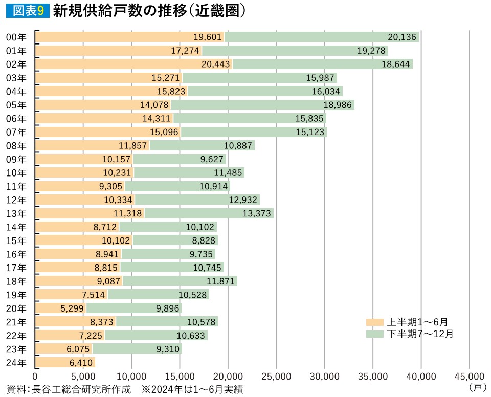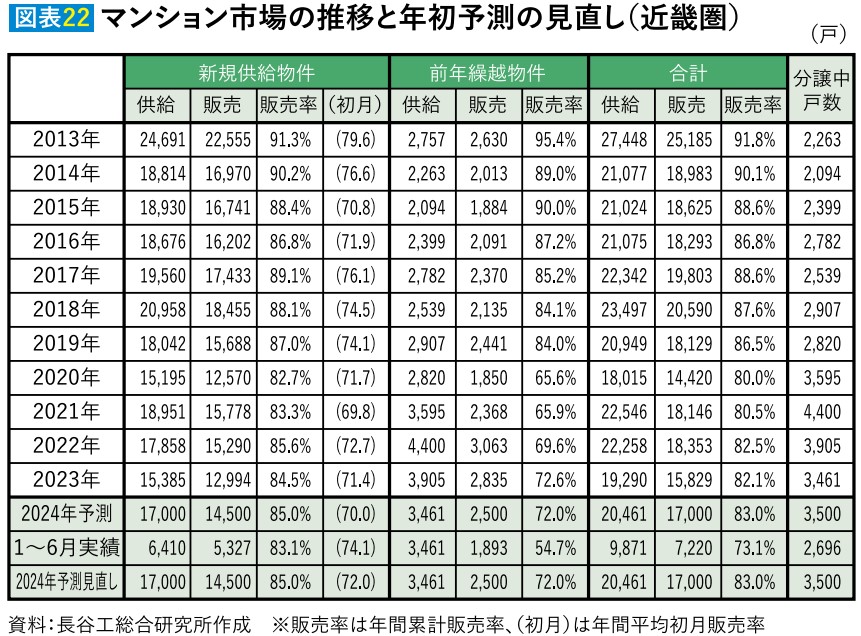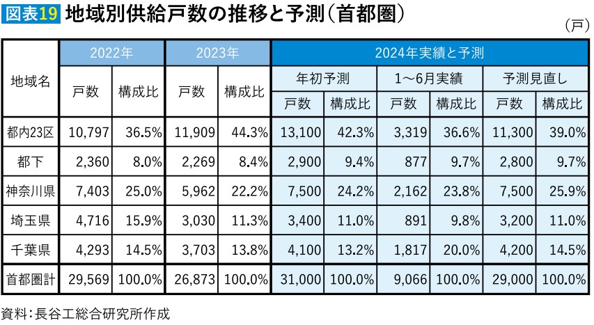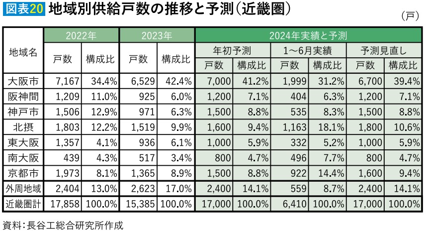 2024年下半期の新規供給戸数については、首都圏では2万戸程度、近畿圏では1万500戸程度の供給が行われると判断した。