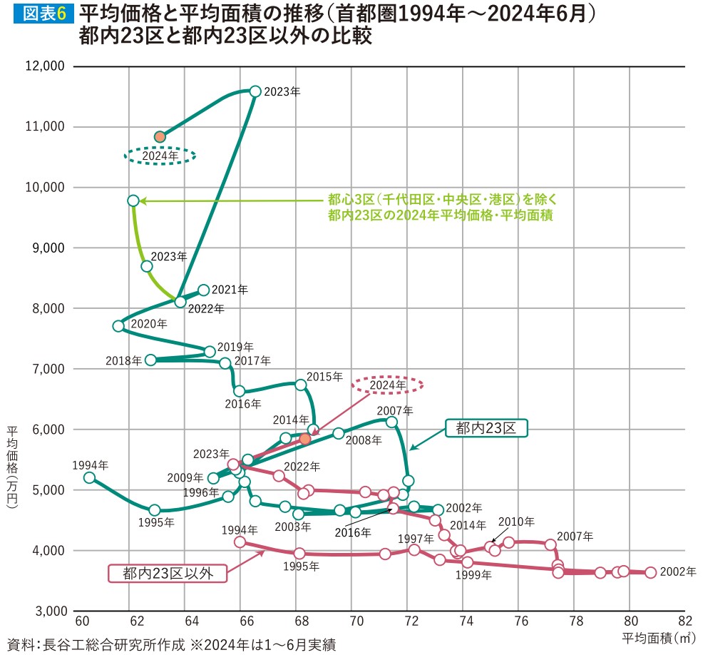 855千円/㎡(前年比8.2%アップ)。平均面積68.34㎡(同2.0%アップ)で、平均価格は5,842万円(同10.4%アップ)となった